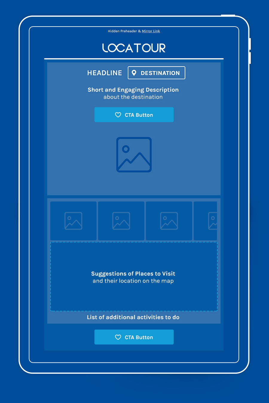 Within the template, content was structured through hierarchically-organised sections to enhance readability and guide readers’ perception to desired actions, based on emailing standards.